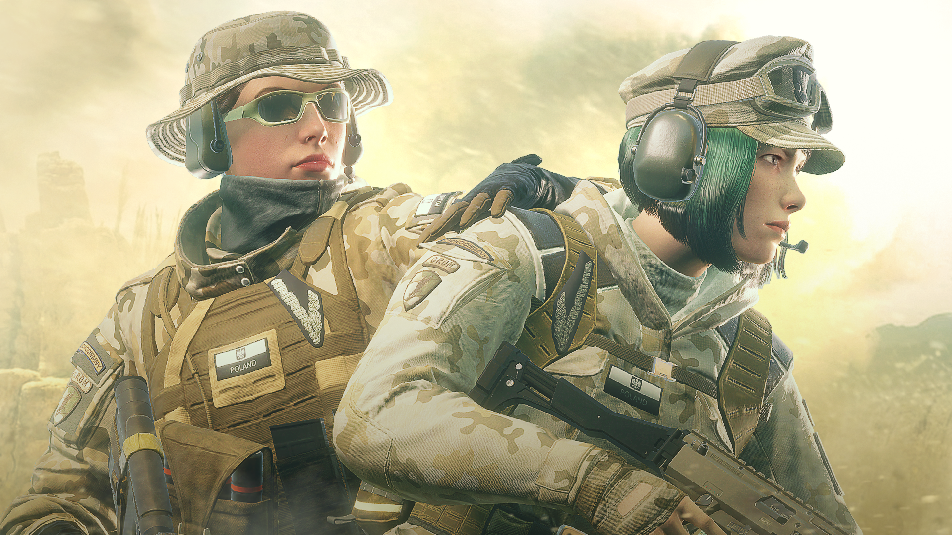 Visual created to display the items and skins for the Grom operators (Ela and Zophia). I was responsible for the lighting, posing, design and composition of the visual. 3D assets provided by R6 Production.