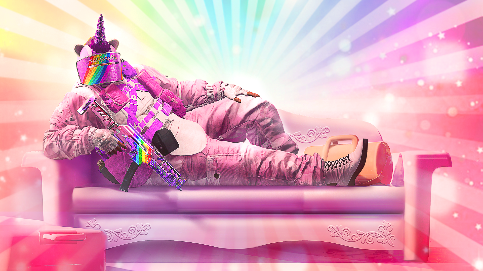 Visual created to display the items and skins available for a limited time event in-game. I was responsible for the lighting, posing, design and composition of the visual. 3D assets provided by R6 Production.